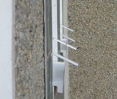 Das ist ein Drahtsystem, wo den Tauben die Möglichkeit genommen wird, sich auf die Fensterbänke zu setzen.